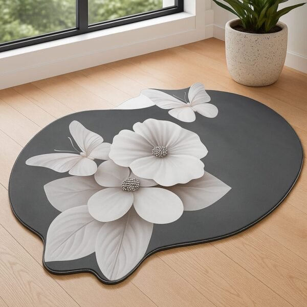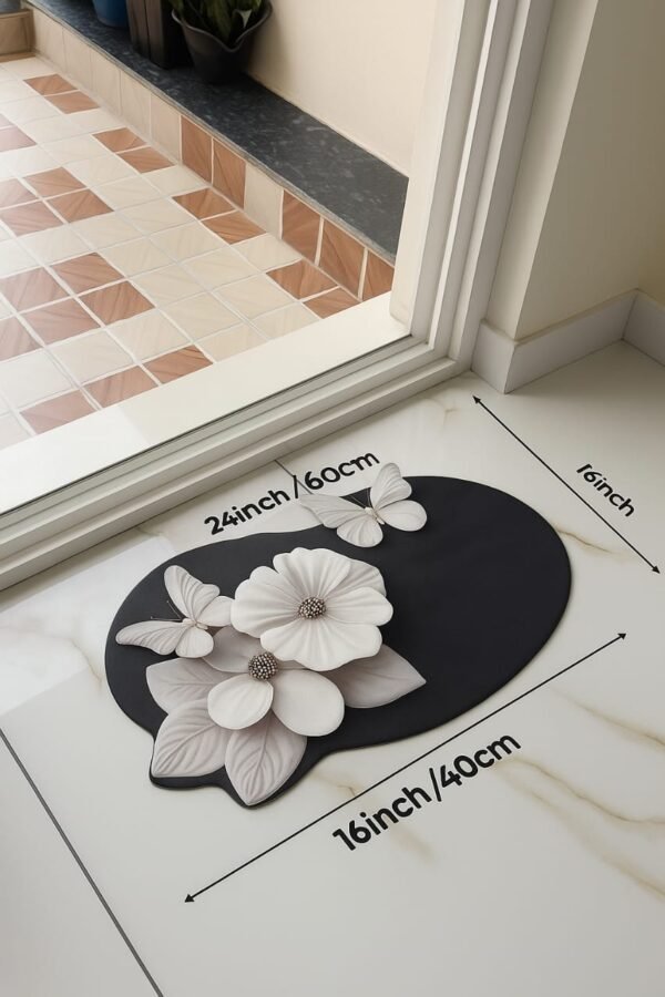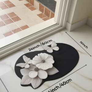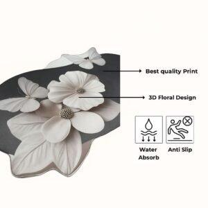 Name : Elegant 3D Floral Rubber Floor Mat – Anti-Slip, Water Absorbent, Soft Surface Carpet for Living Room, Bathroom & Entryway