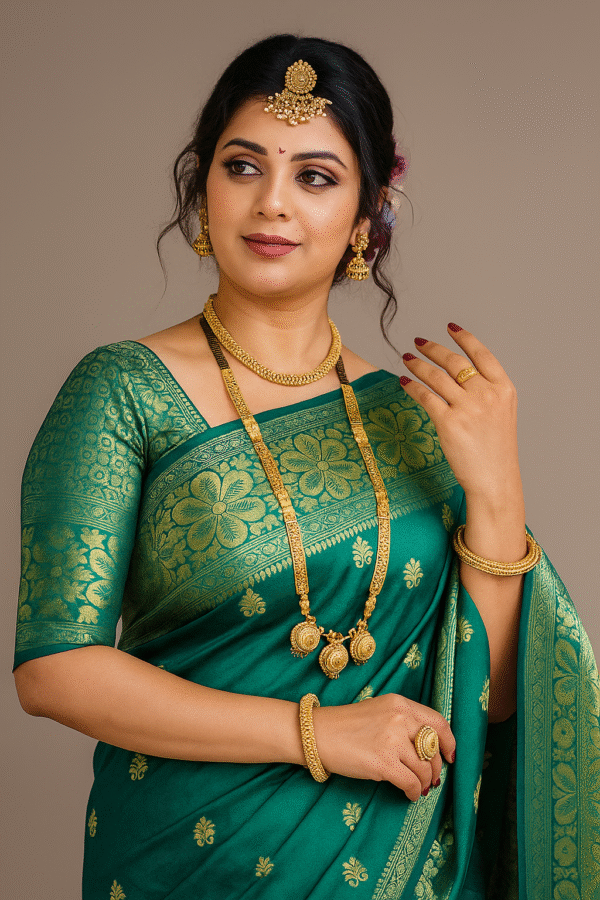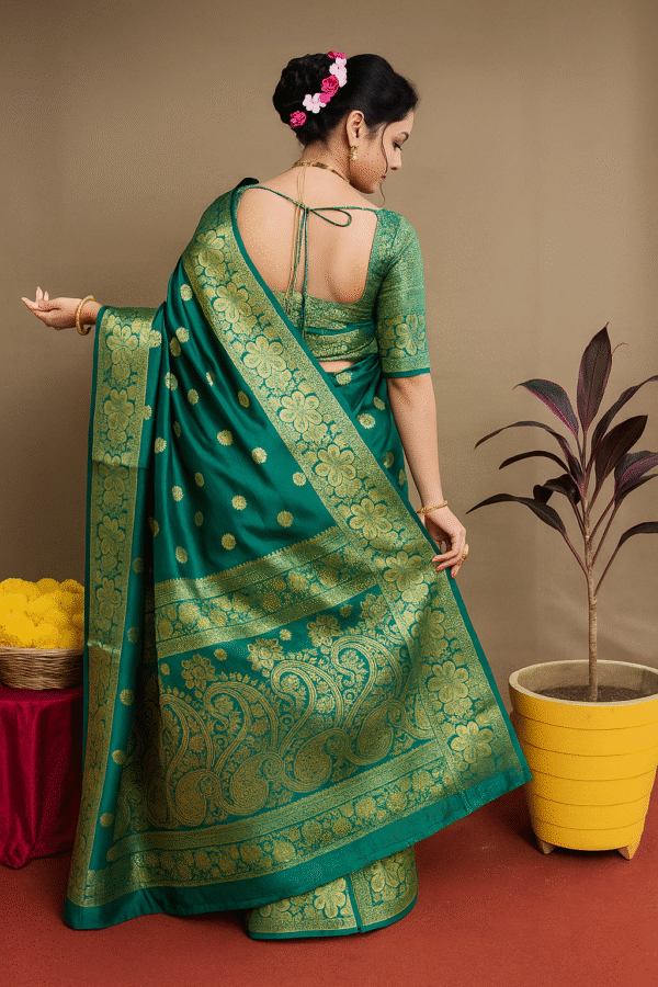 Be the first to review “Pure Banarasi Silk Rama Saree”